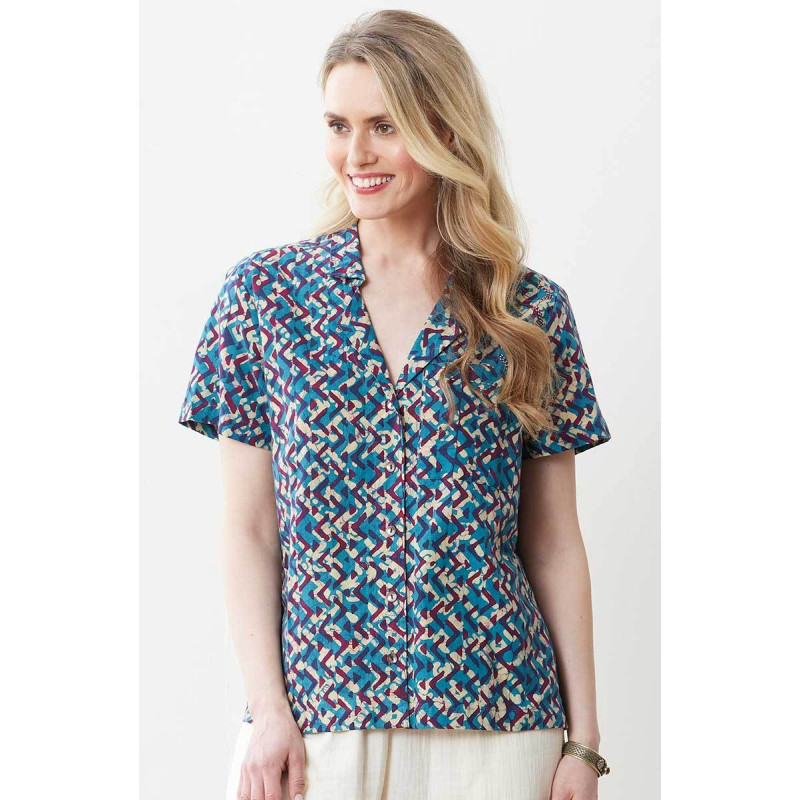 • Saima Camp Shirt - Deep sea/Multi